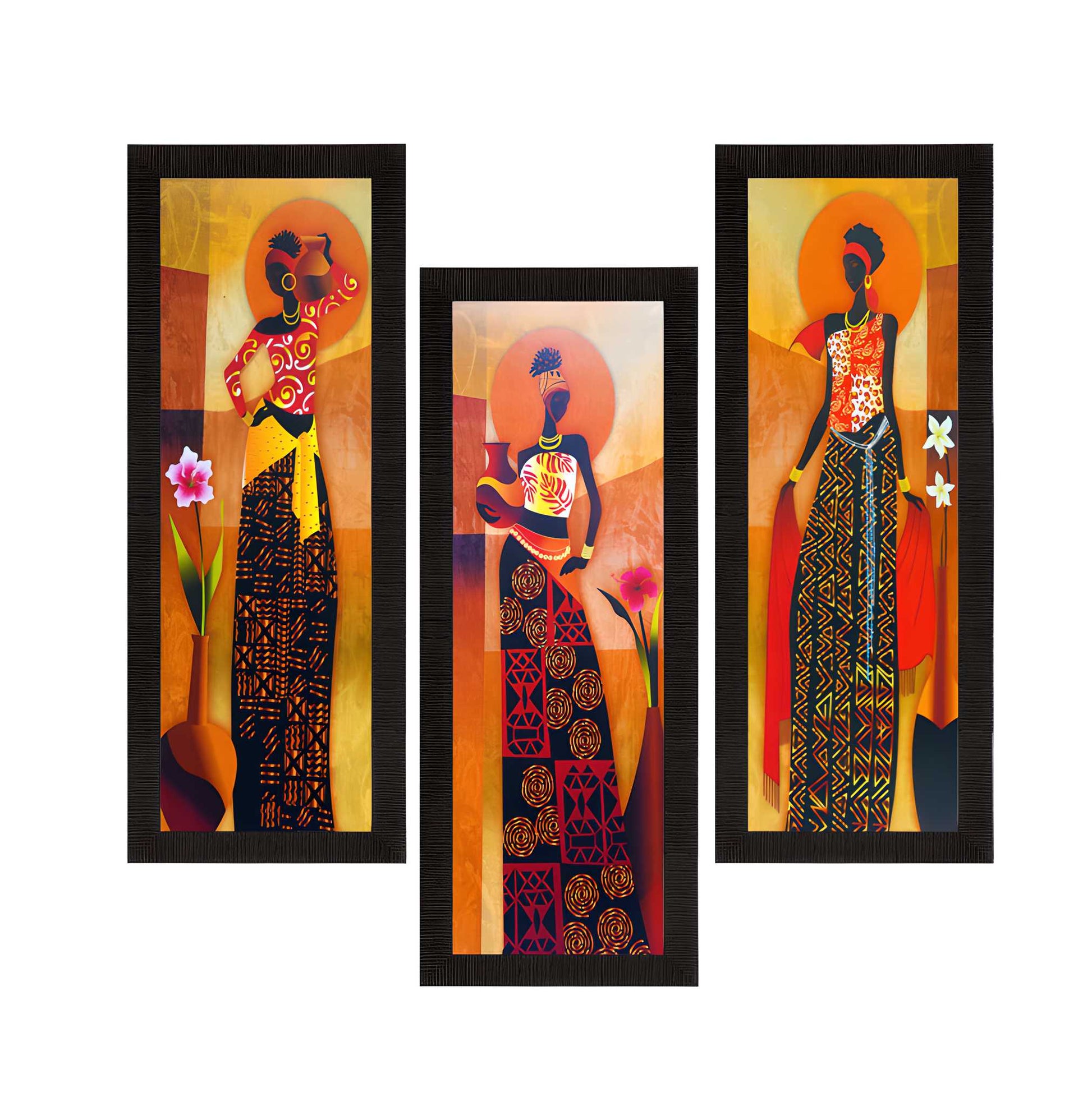 Product Name: eCraftIndia Set Of 3 Tribal Village Ladies Satin Matt Texture UV Art Painting